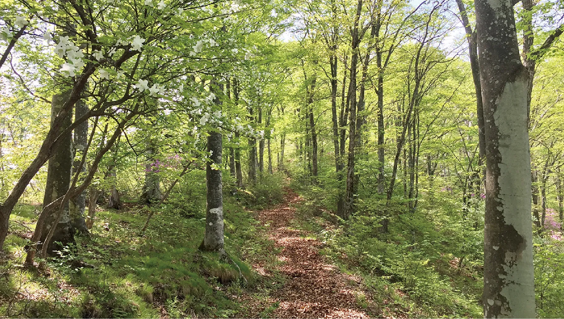 ブナ林の遊歩道はフカフカのじゅうたんの上を歩いているような感じがします。